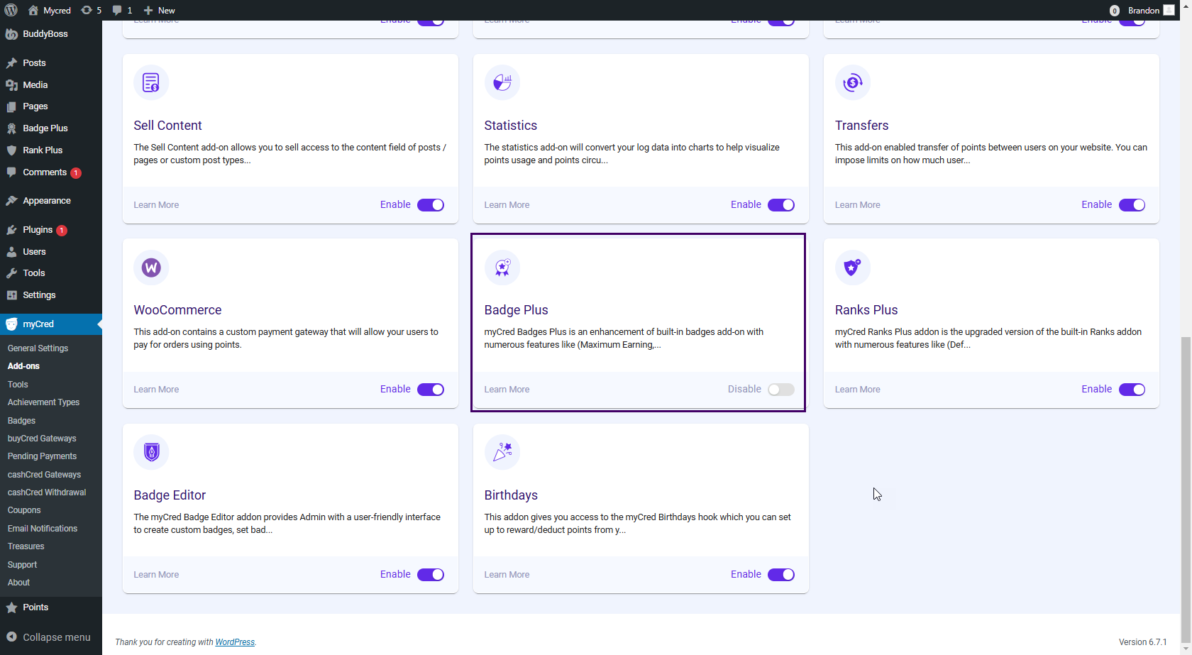 No Separate Installation Required: The Badge Plus features are now part of the myCred Core plugin. Ensure your myCred plugin is updated to the latest version to access these features.