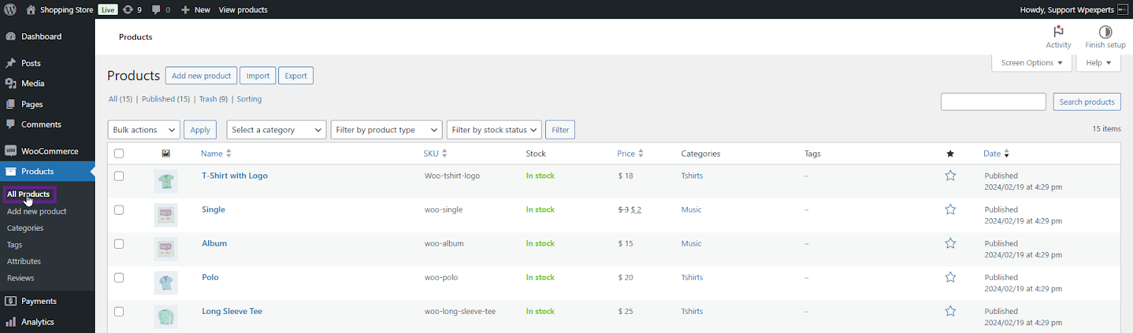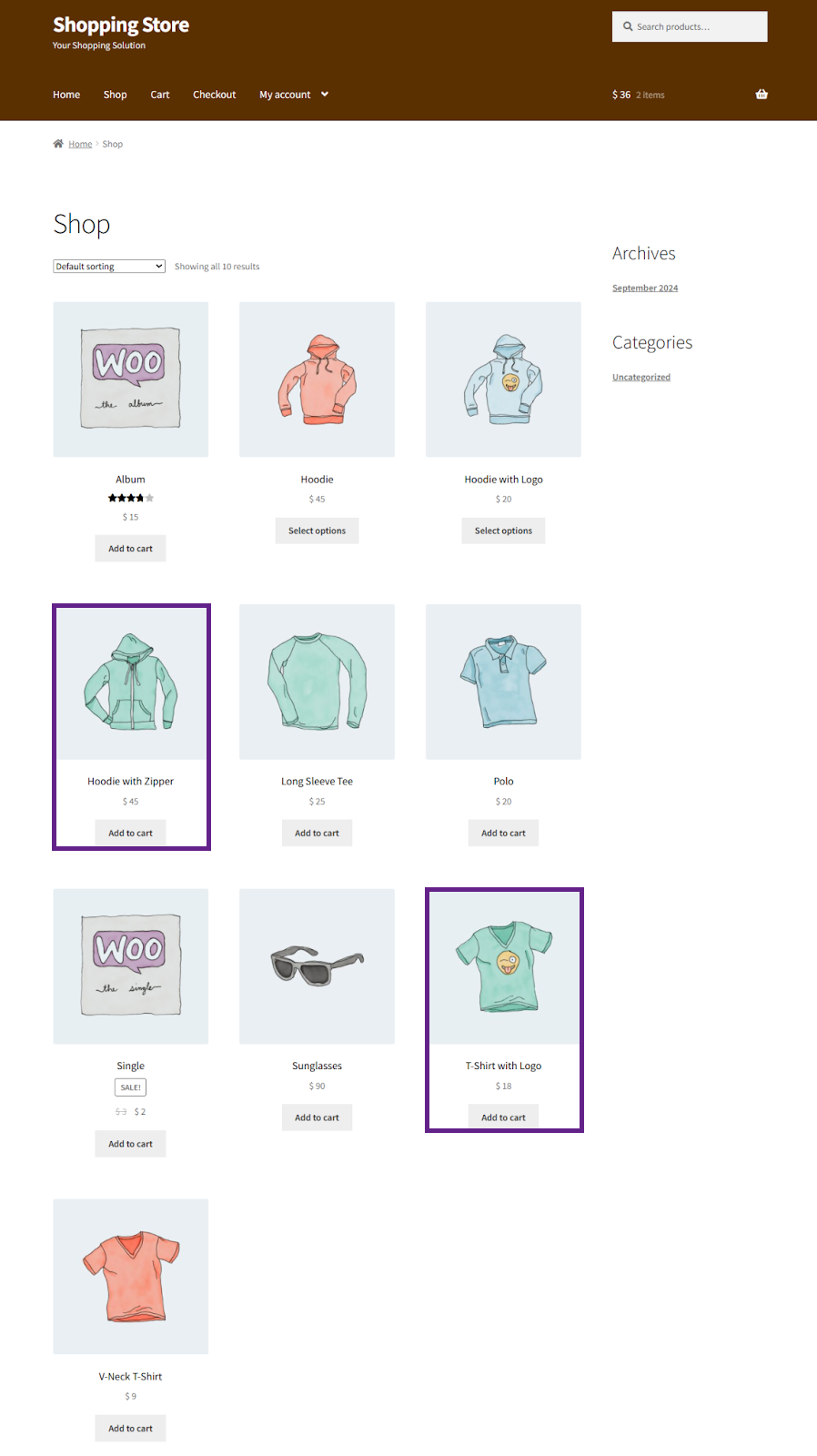 Note: The Hoodie with Zipper belongs to the Hoodies category, while the T-shirt with Logo belongs to the Accessories category.