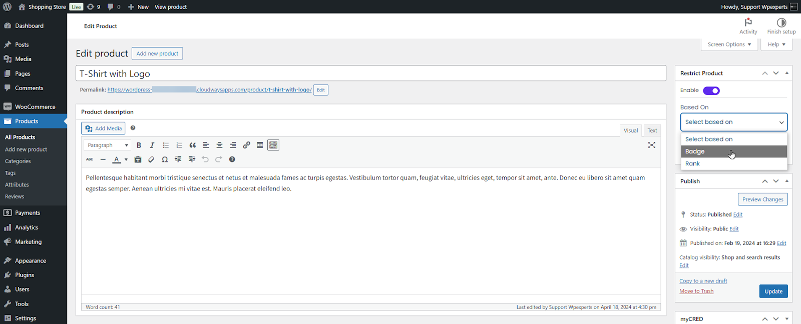 - Specific product restrictions can be applied based on ranks and badges. In this case, we will restrict the product based on Badges
