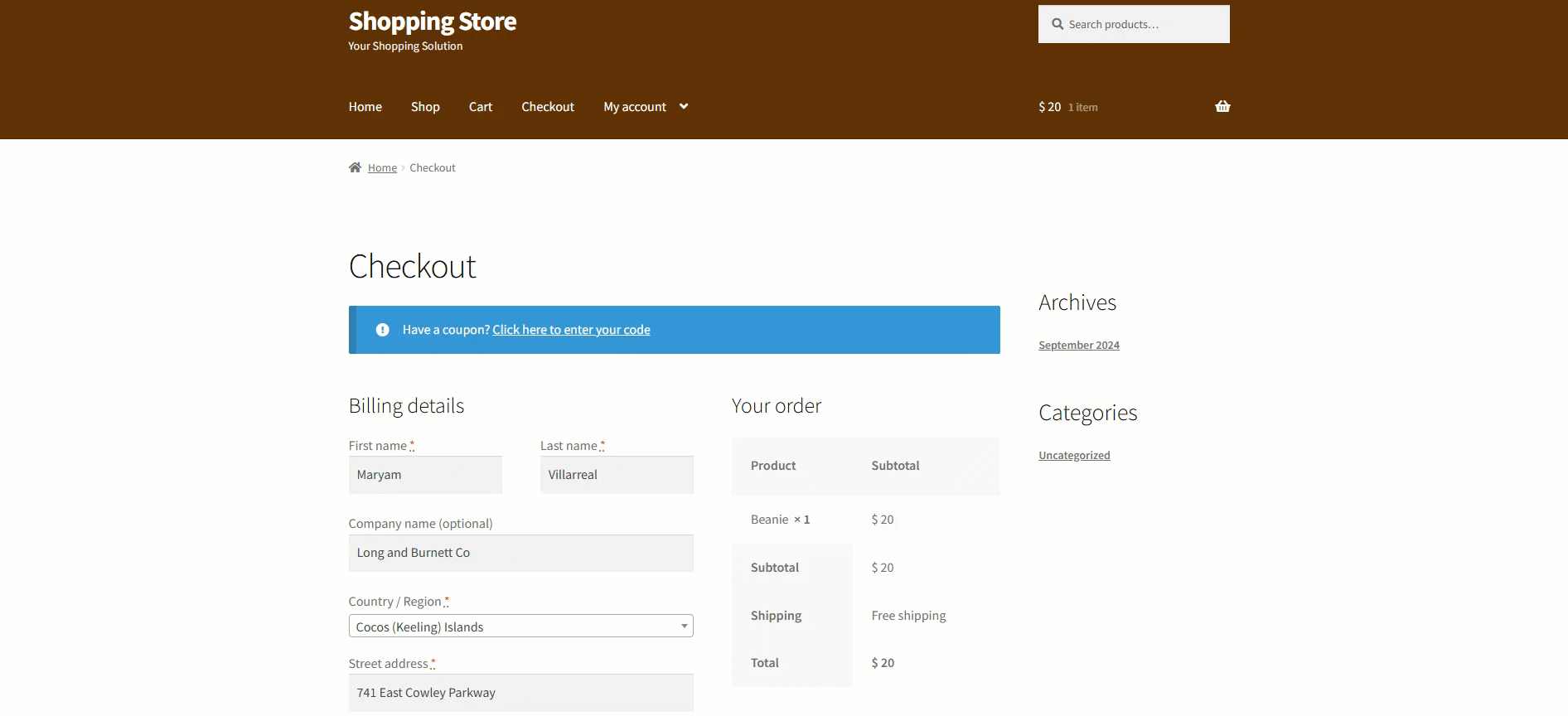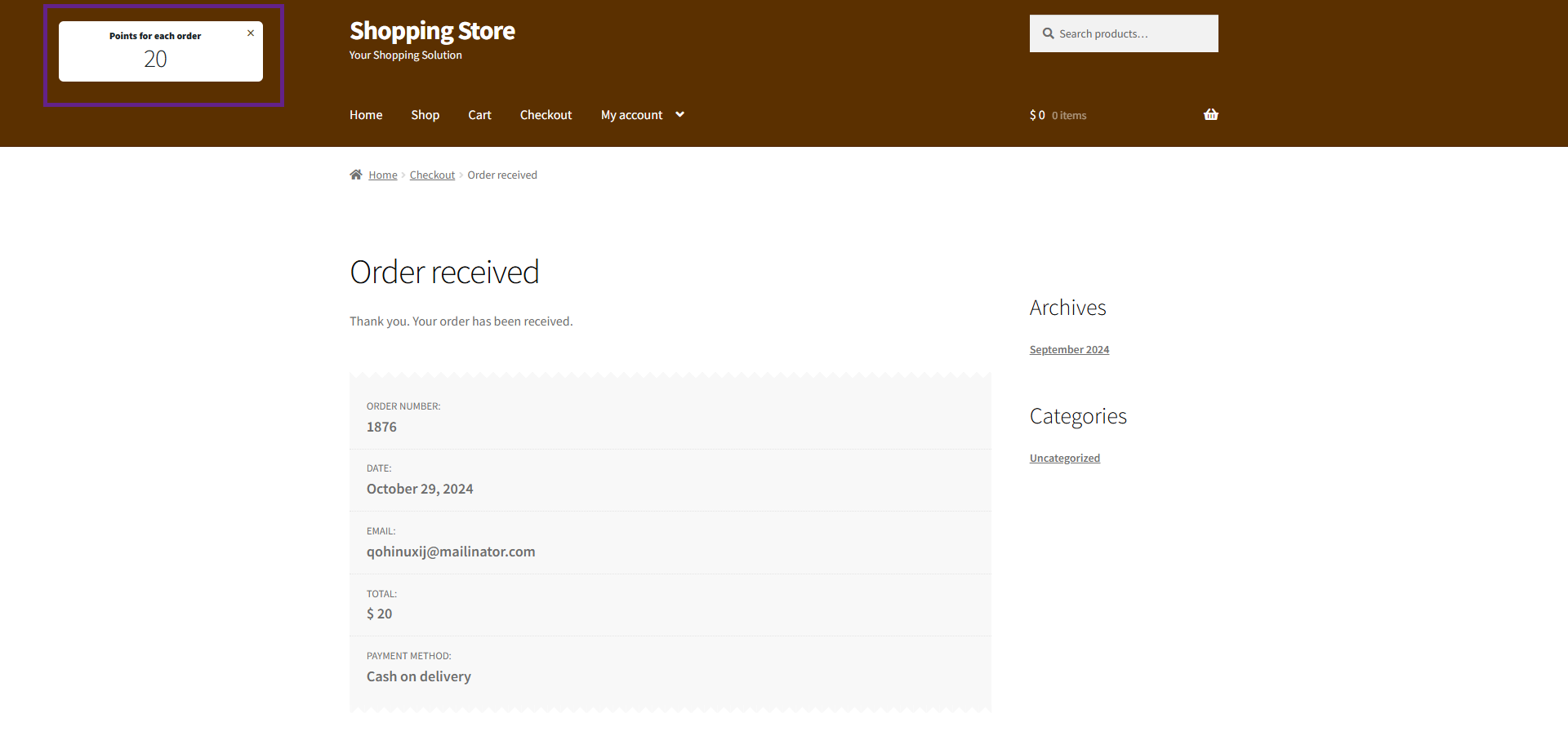 - Place the order. Once the order is placed, a points notification will appear without the need to refresh the page.
