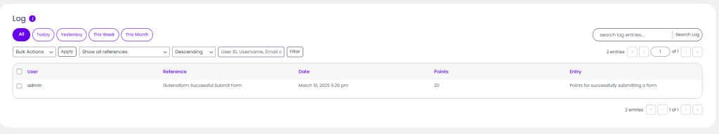- It allows you to award points as a reward on form submission.