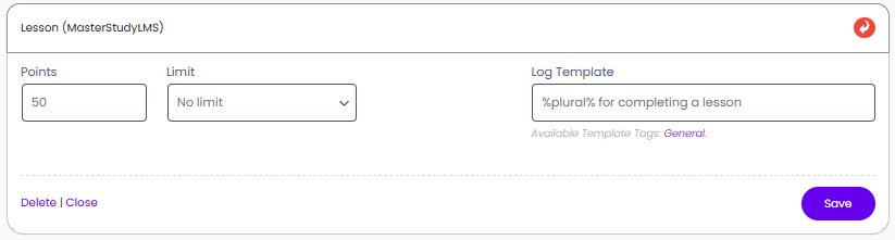 Masterstudy LMS addon awarding points for course, lesson, and quiz completion.