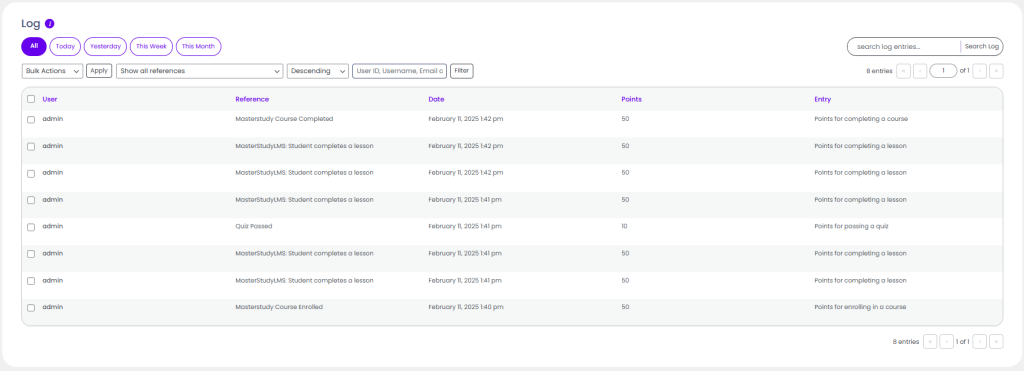 Admin can check Customers who earned points by awarding points for courses, lessons, and quizzes.