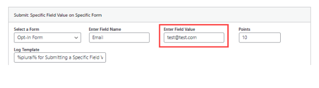In the hook settings, there are fields given where you can specify the field name in the form for which you want to award the points and also you can set what value is to be entered in the specific field for the award mechanism to activate. Log template can also be set for the respective hook event. The field name is case sensitive and you will have to add the roper field name in order for the hook to trigger.