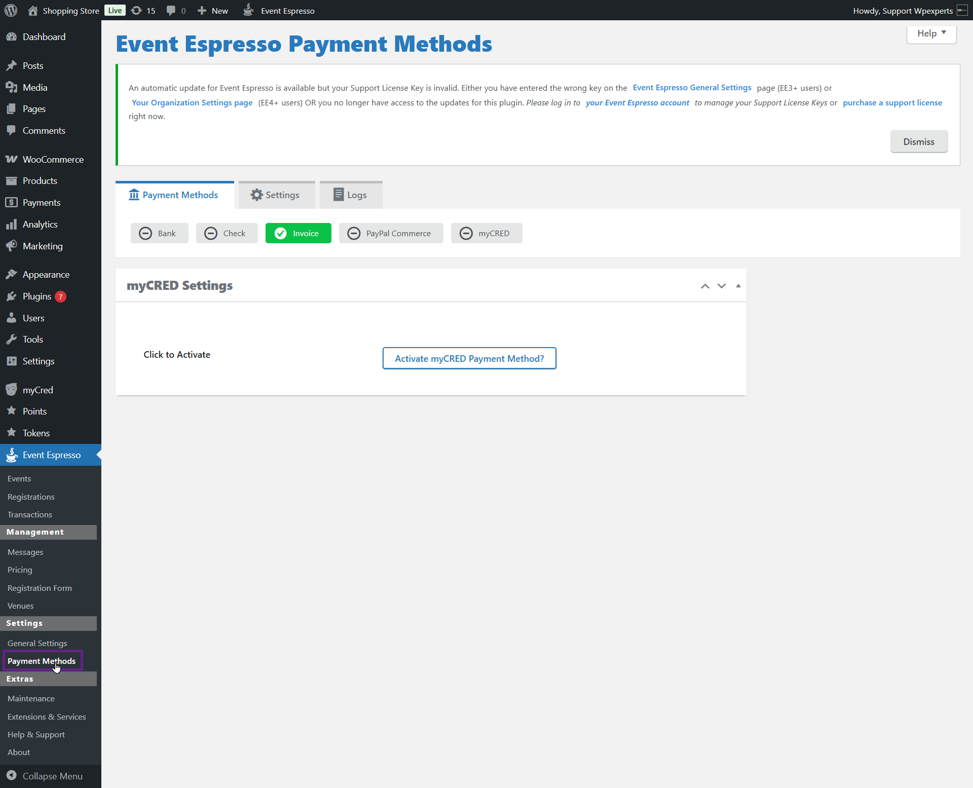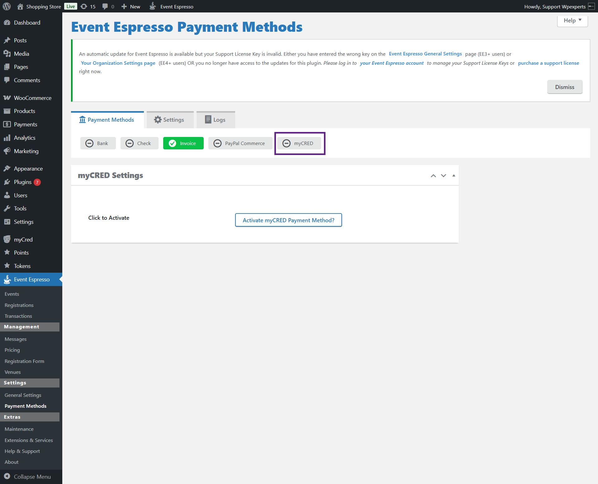 myCred Event Espresso enables a custom myCred payment option in your Event Espresso settings. Like other payment gateways, users can use this add-on to purchase event tickets using their points.