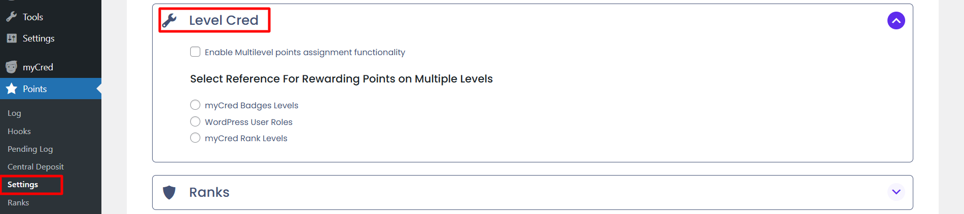 - myCred Rank Levels: Points can be linked to specific myCred rank levels, giving users rewards based on their rank progression.