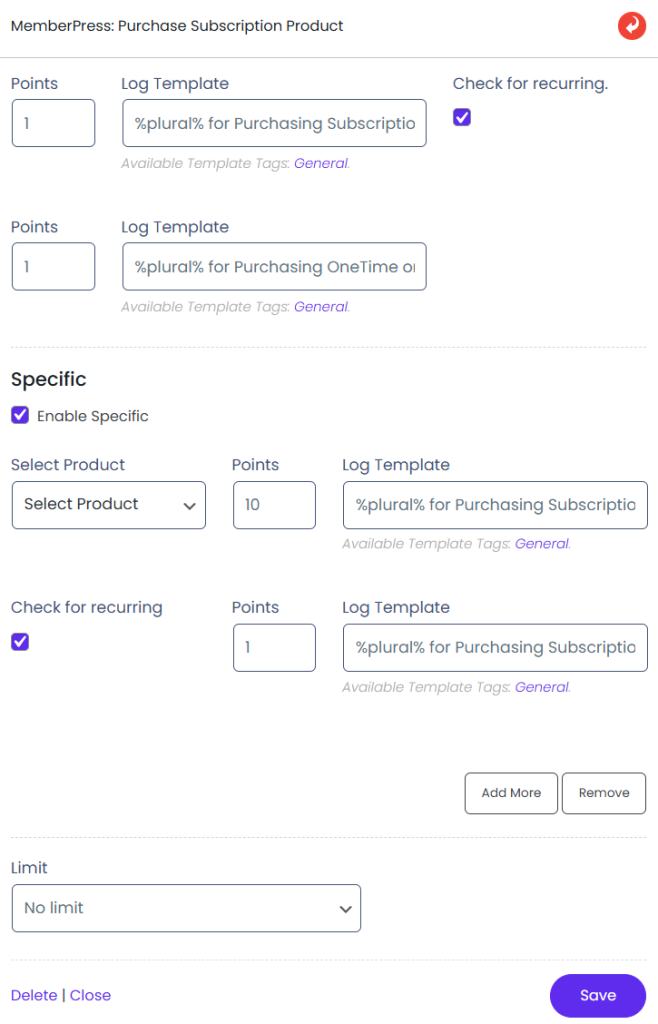 myCred Memberpress Integration awards myCred points when a membership has been subscribed that was created via Memberpress , the integration has been equipped with multiple hooks that can be set to award points for multiple membership types in Memberpress when the subscription event is triggered.