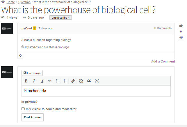 - Enter your answer, You can also edit the privacy of the answer by making it public and private (only visible to the Admin and Moderator).