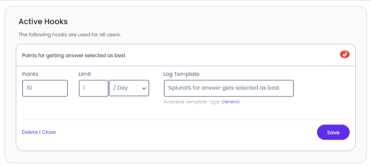- Go to Admin Dashboard > Default Point Type (most likely to appear as Points if you haven’t changed its name) > Hooks
