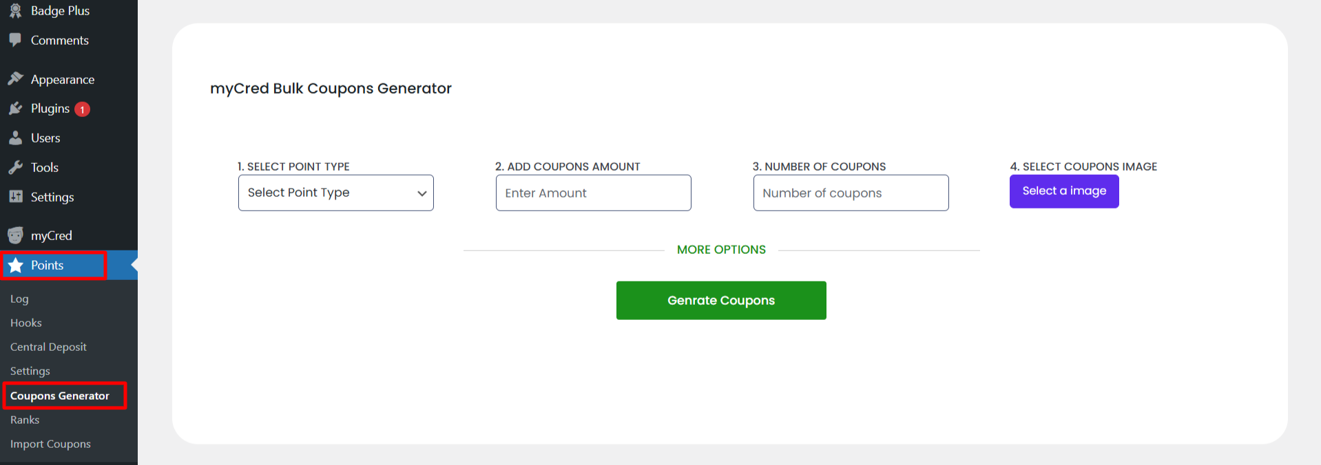myCred coupon plus enables the user to generate coupons in bulk, and it also allows customization of the way the coupons are rewarded via the Coupon addon in myCred. The user can also bulk upload the coupons via a CSV file, or can download the data regarding the coupons in CSV format that are already published.