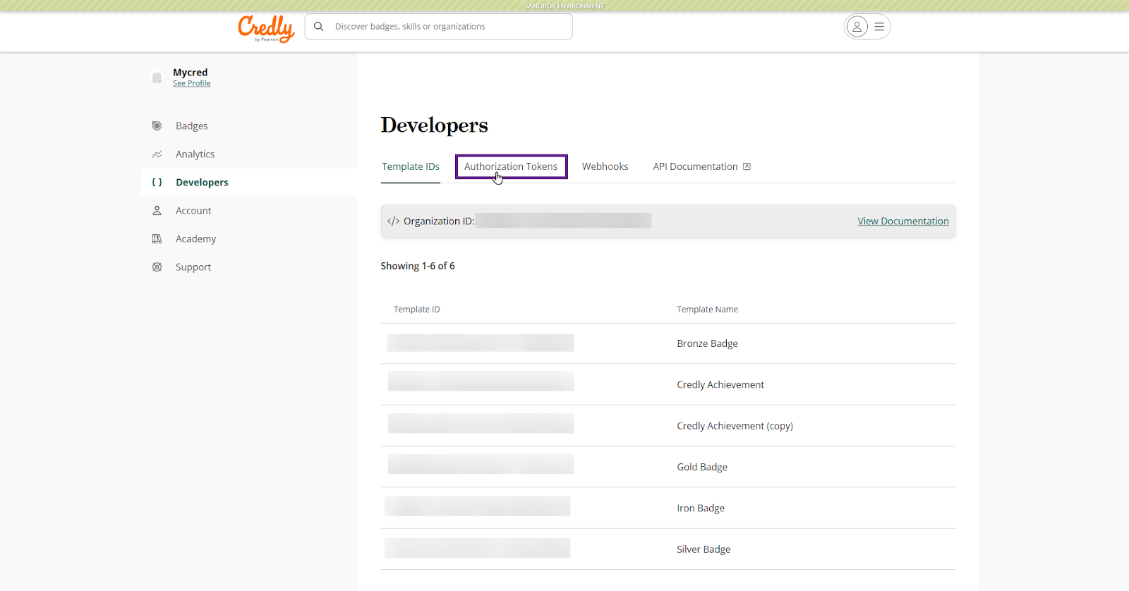 Note: A Credly account is required to obtain the Authorization Token and Organization ID.