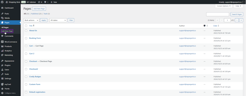 - Copy and paste the [mycred_credly_login] shortcode on the newly created page.