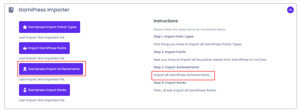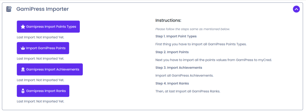 - It allows you to reassign all Gamipress user-earned points / Achievements / Ranks to myCred