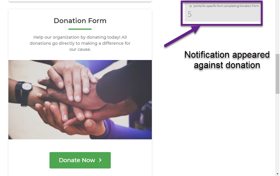 In this case when customer will donate on a specific form so he/she will be rewarded with 10 Hook Points and 15 points of badge along with badge