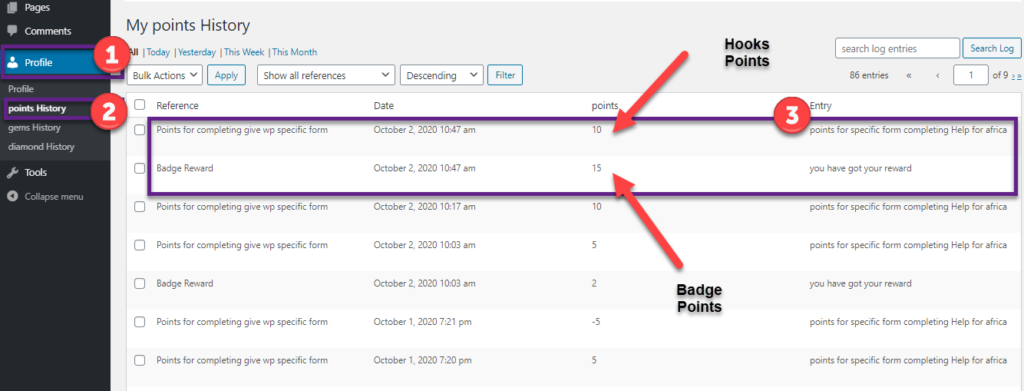 Therefore ‘Awarded’ points can be seen in ‘Profile History’