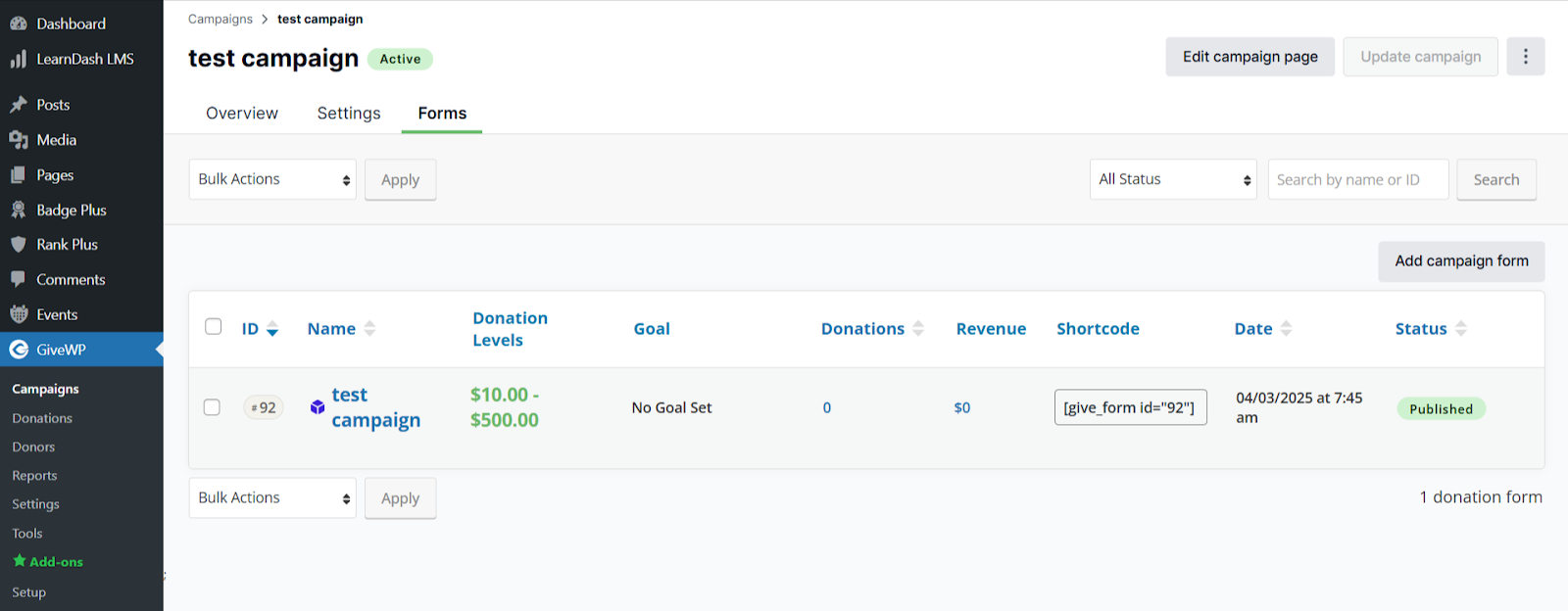 As we can donate in any form and there is no restriction of selecting a specific form in this case, therefore we donated at ‘Donation Form’