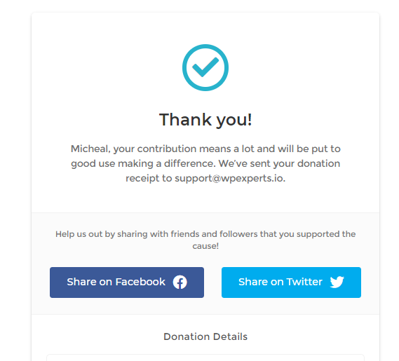 Customer has donated for the stated campaign and has been rewarded with ‘5’ Points