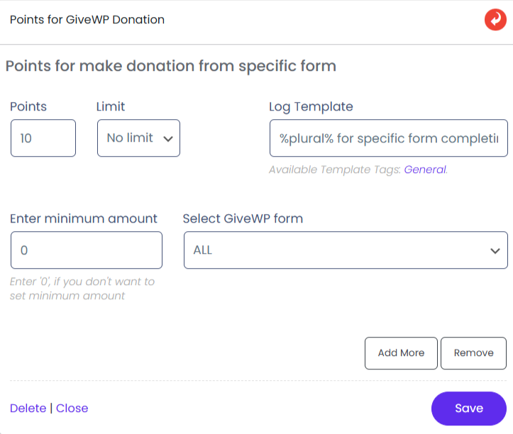 - Award/deduct points on ‘donation of minimum amount’ (Threshold of specific amount)