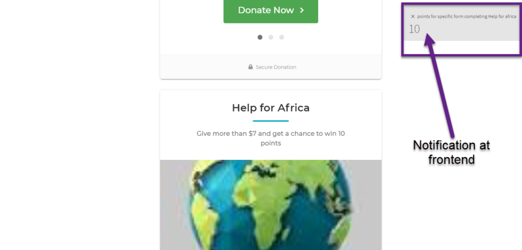 In this scenario ‘5’ points will be deducted from customers account if they donate to ‘Help for Africa’ campaign