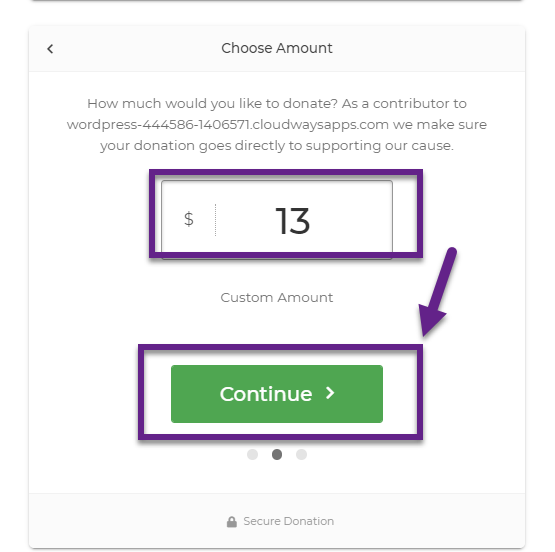 - ‘Select’ or ‘give amount’ of donation and click on continue