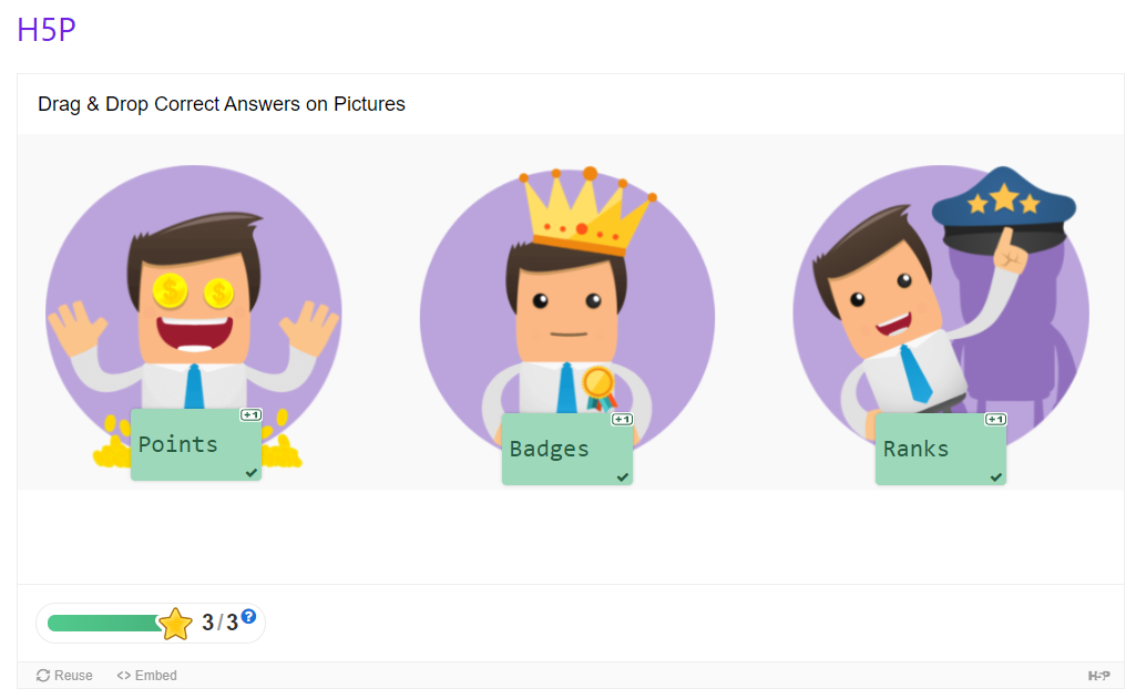 myCred-H5P lets you award points to your users on H5P interactive activities. Encourage and increase user engagement by adding gamification element to your H5P multimedia content. Also, recognized individual achievements by awarding badges on completion of H5P content.