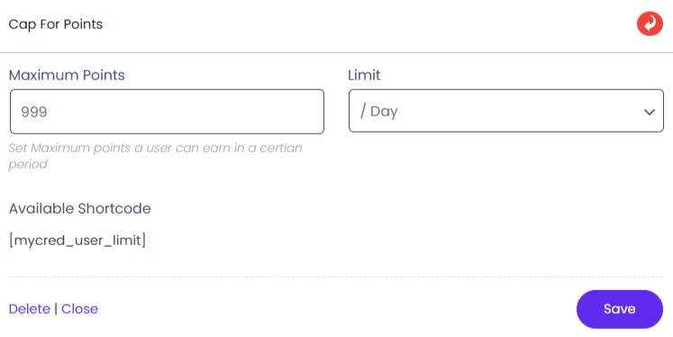 - Shortcode for this [mycred_user_limit]