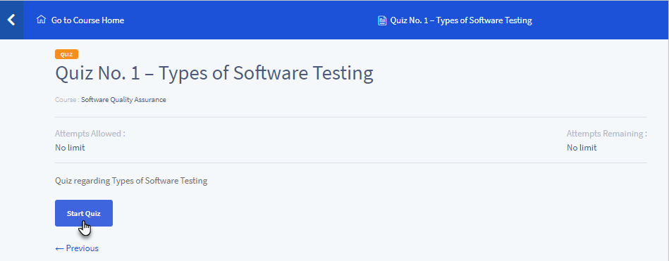 - In the Course Page section of the course, all the quizzes are mentioned.