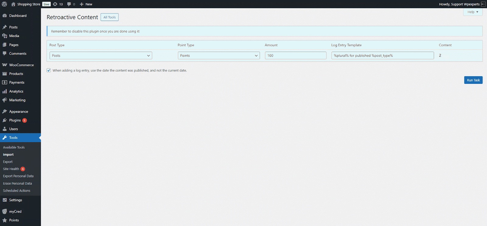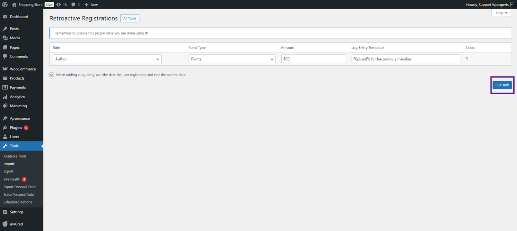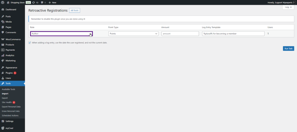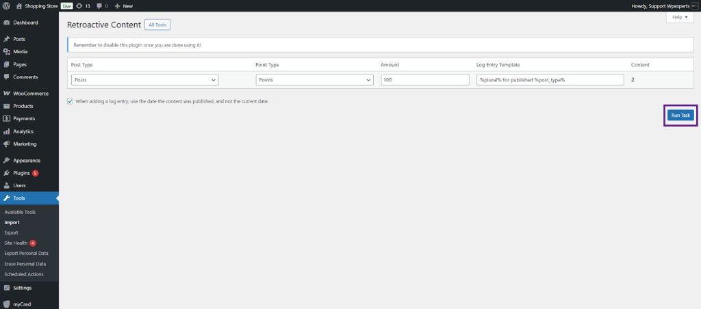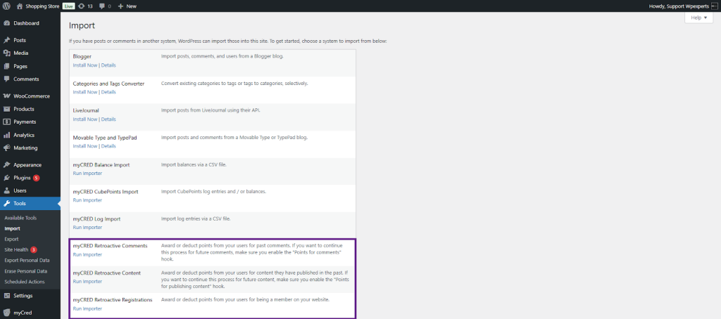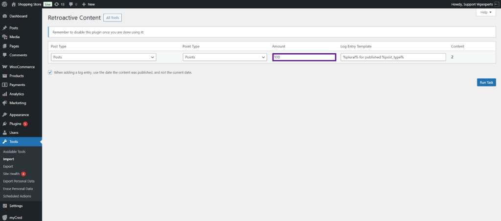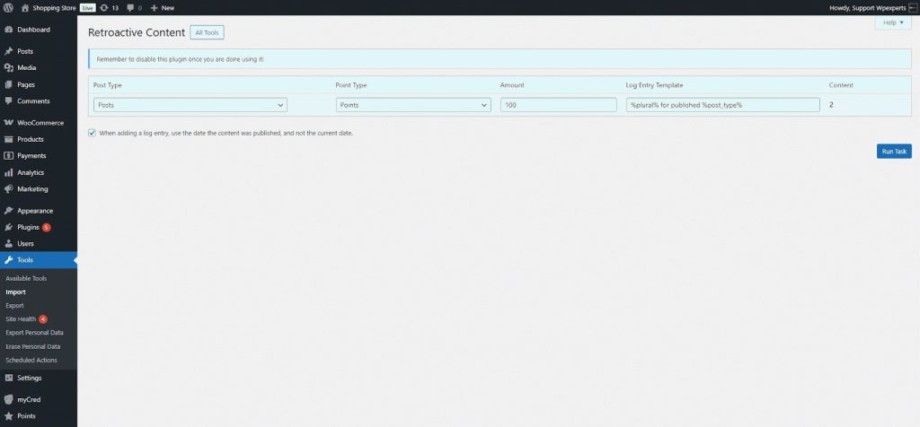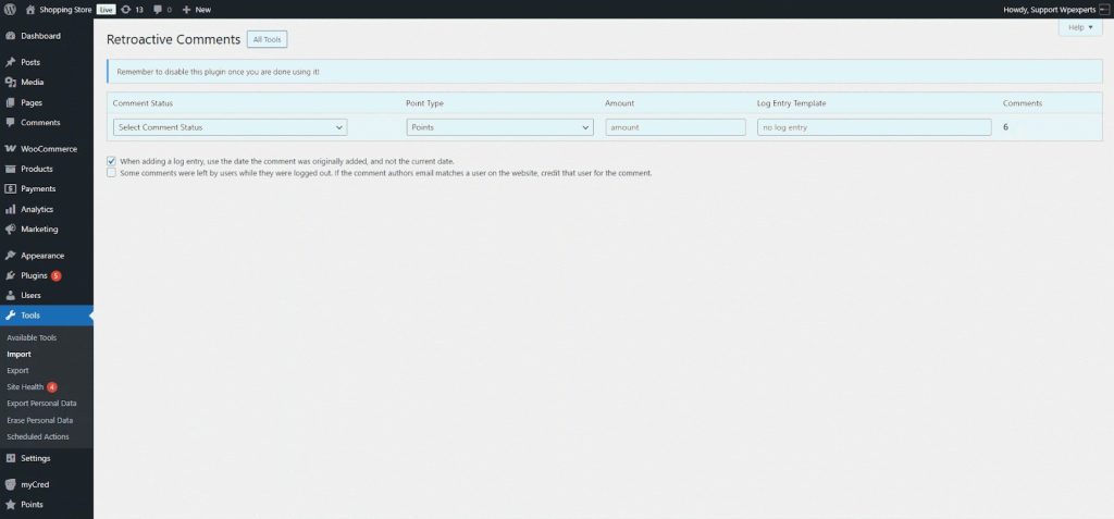 When you install myCred on an existing website, there may already be content or user actions you’d like to reward or deduct points for. This plugin helps by allowing retroactive point payouts for actions like user registrations, published content, and approved comments.