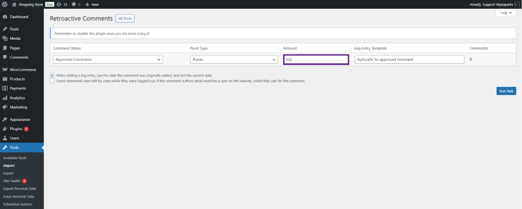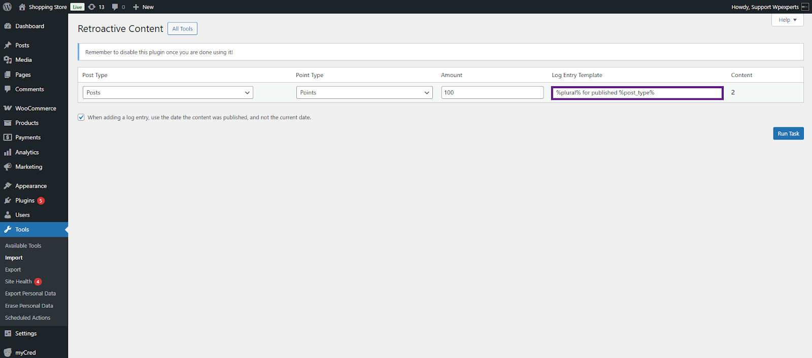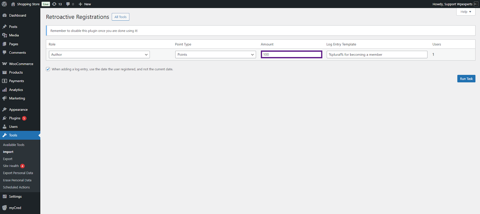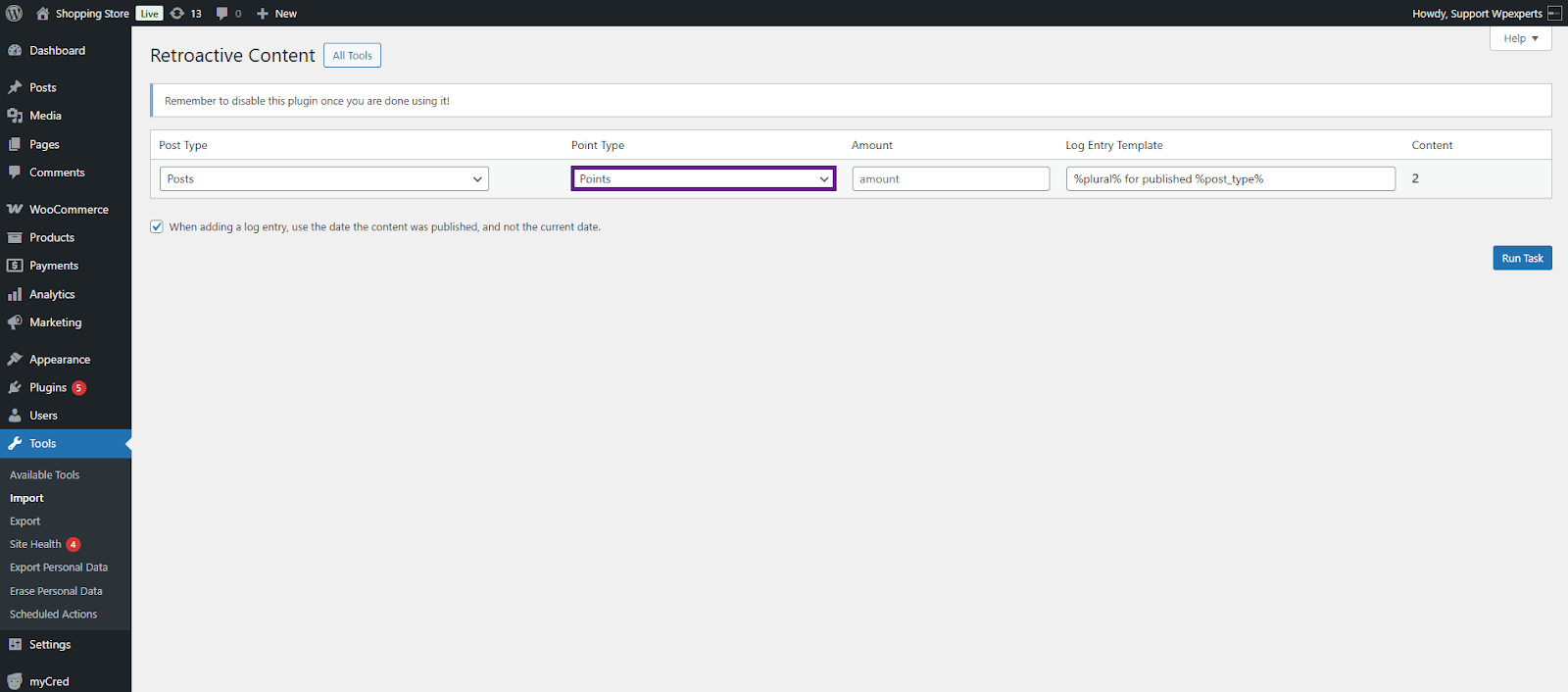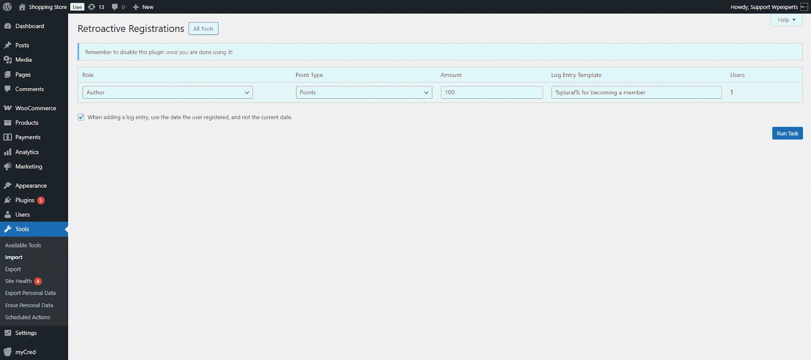 When you install myCred on an existing website, there may already be content or user actions you’d like to reward or deduct points for. This plugin helps by allowing retroactive point payouts for actions like user registrations, published content, and approved comments.