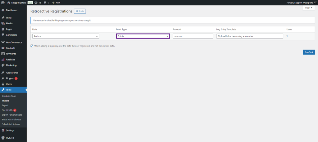 myCRED Retroactive Registration