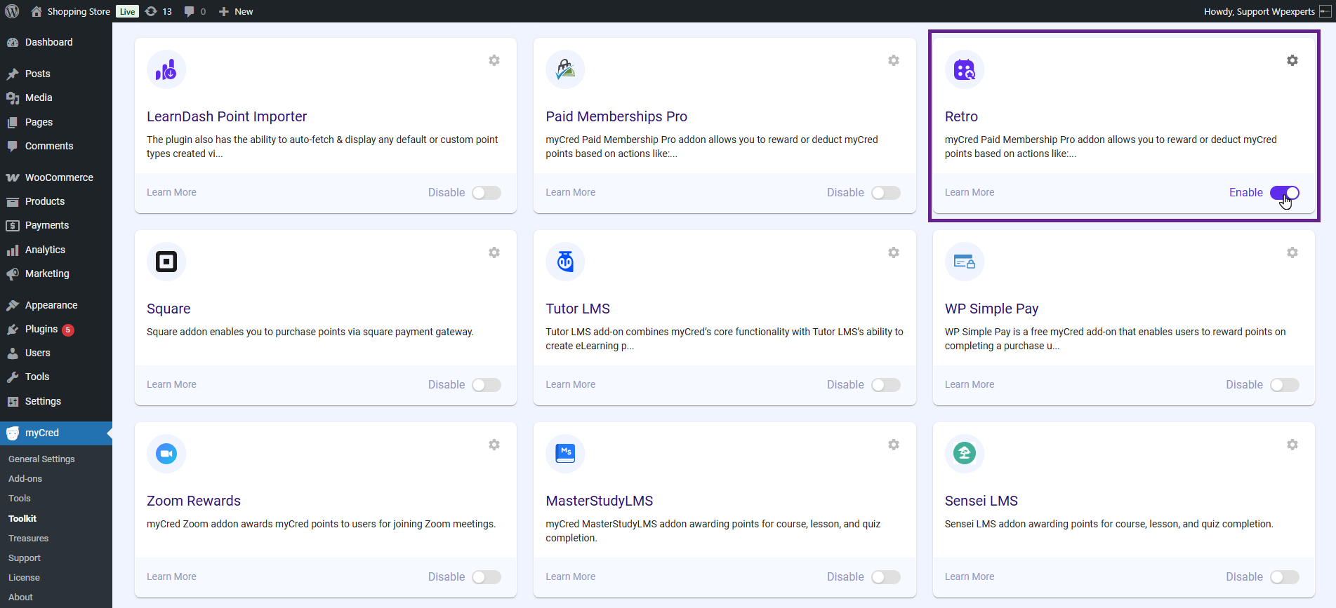 Note: Ensure that the myCred Retro plugin is installed and activated.