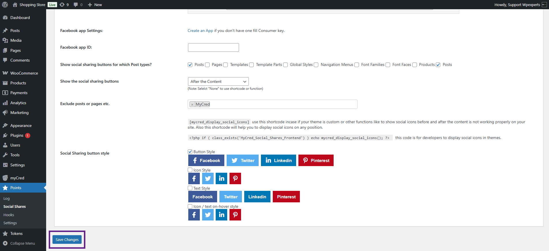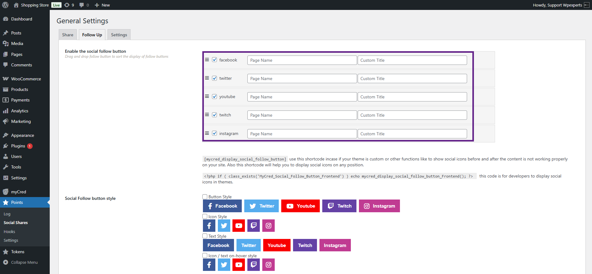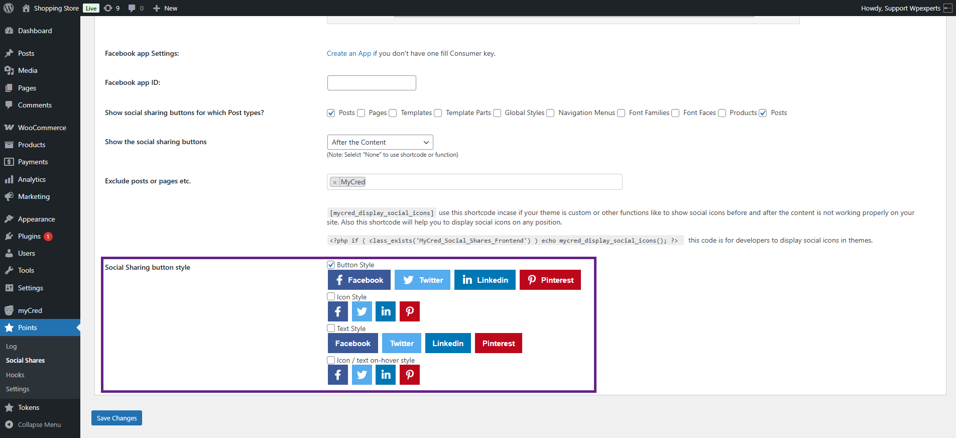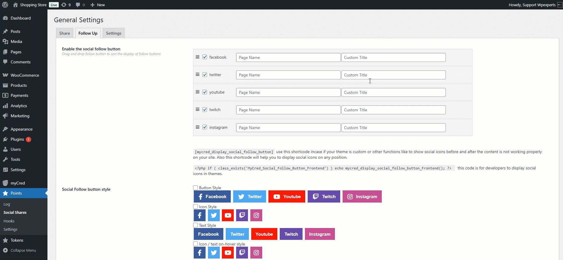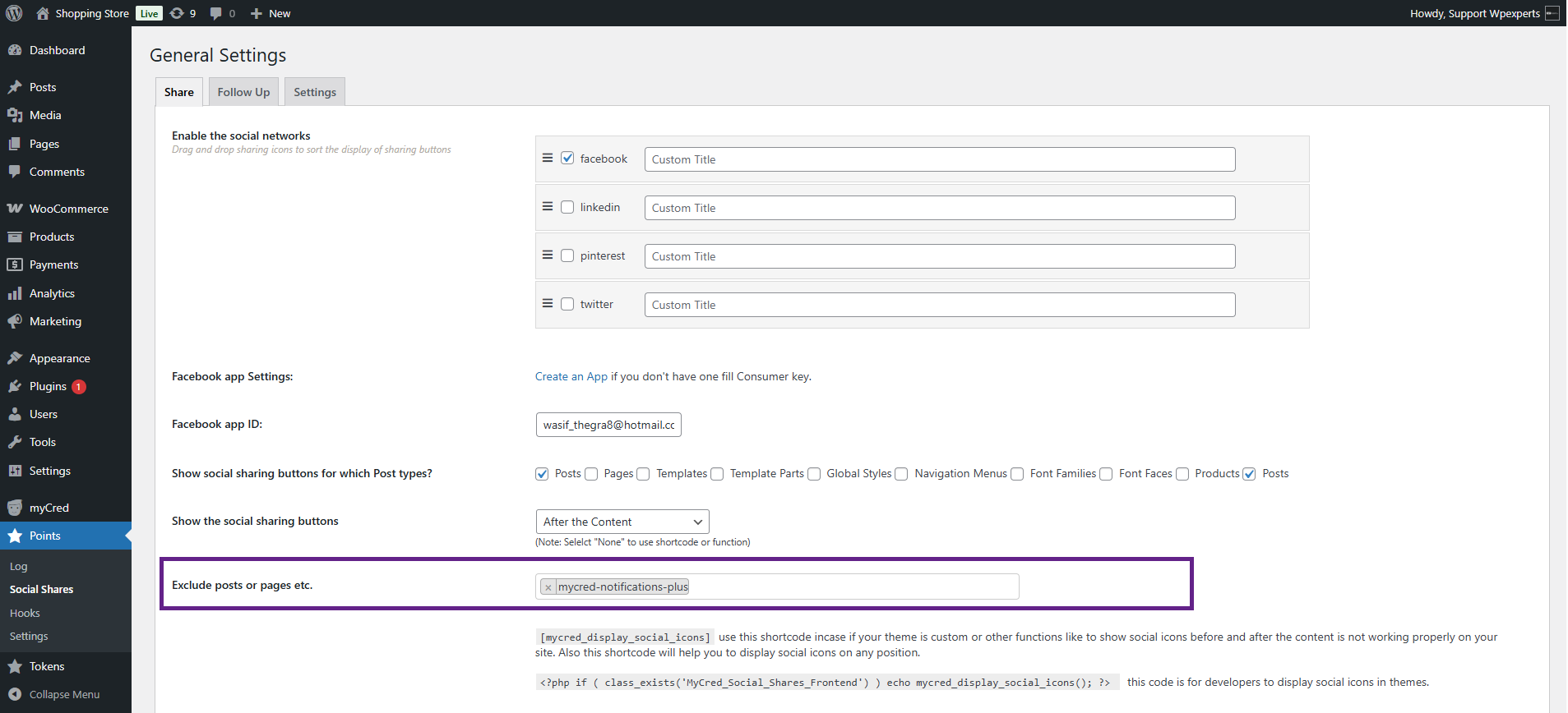 - Now, navigate to the Admin Dashboard > Points > Social Shares.