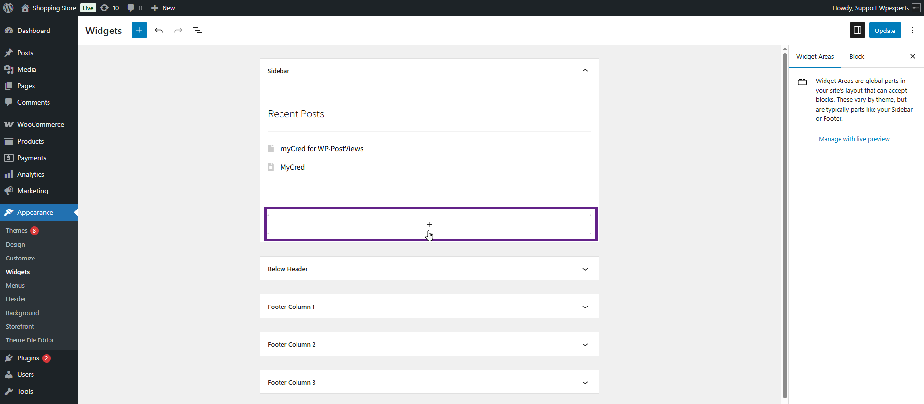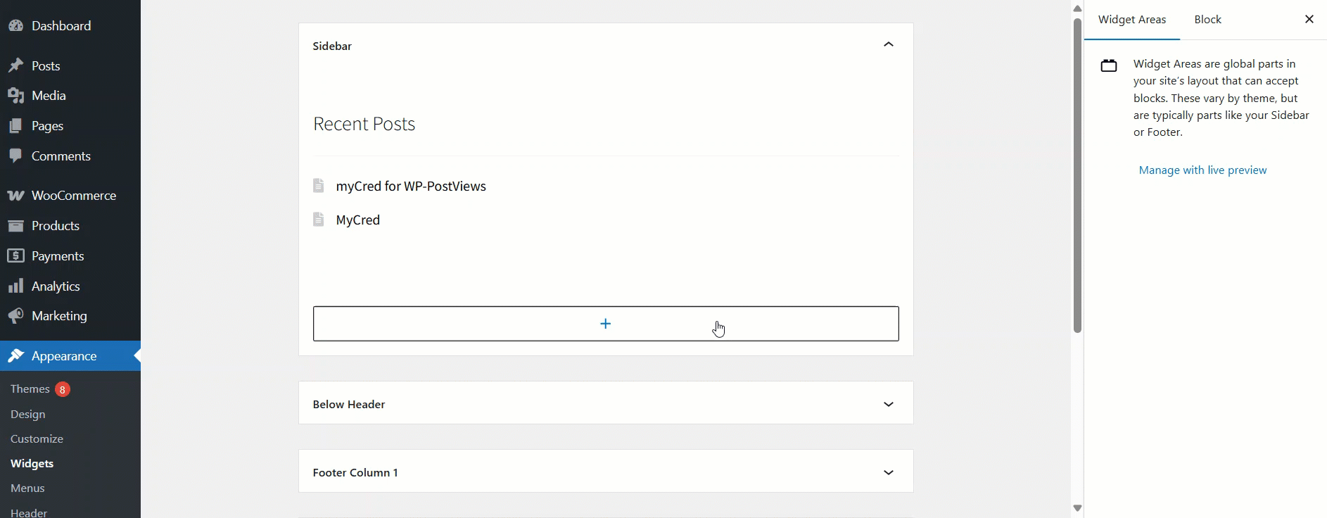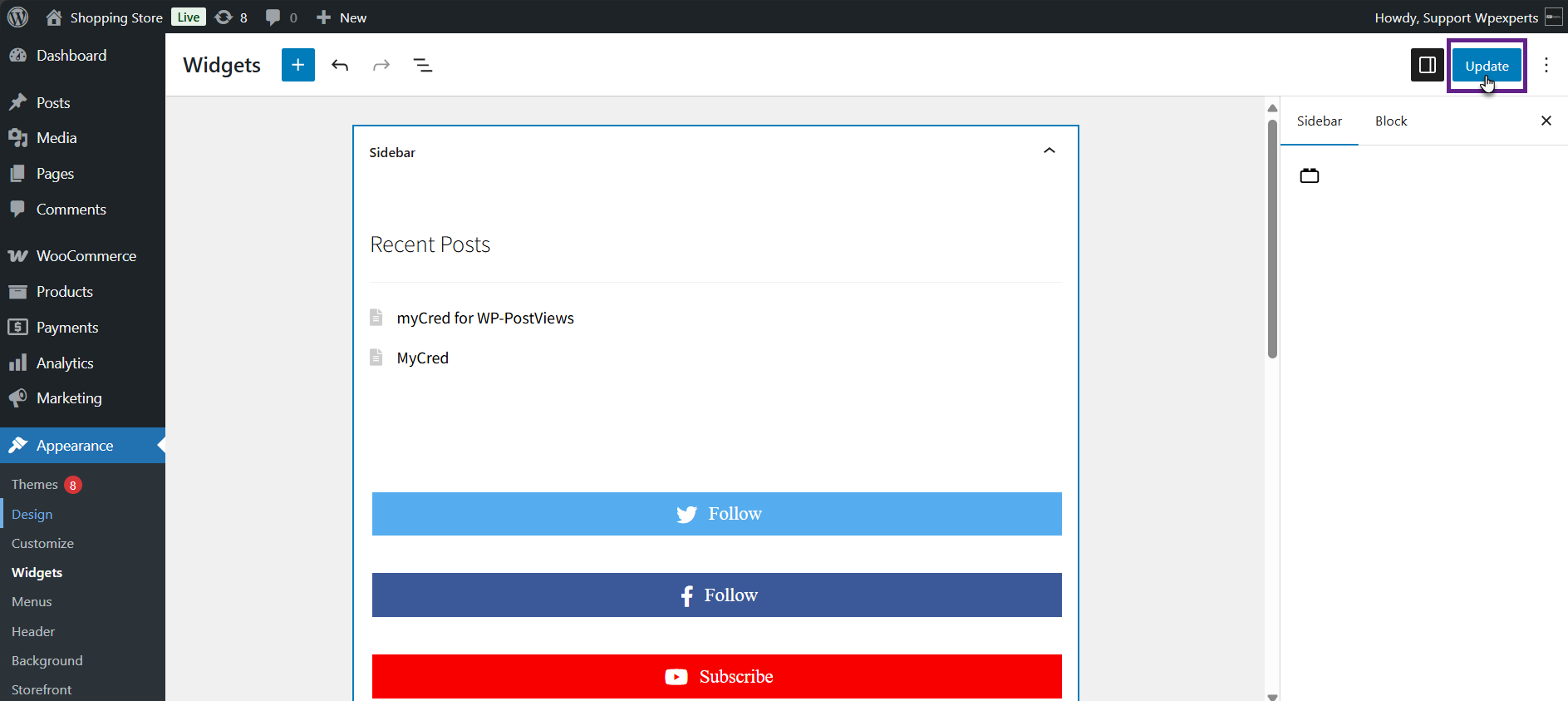 - Now, navigate to the Admin Dashboard > Appearance > Widgets.