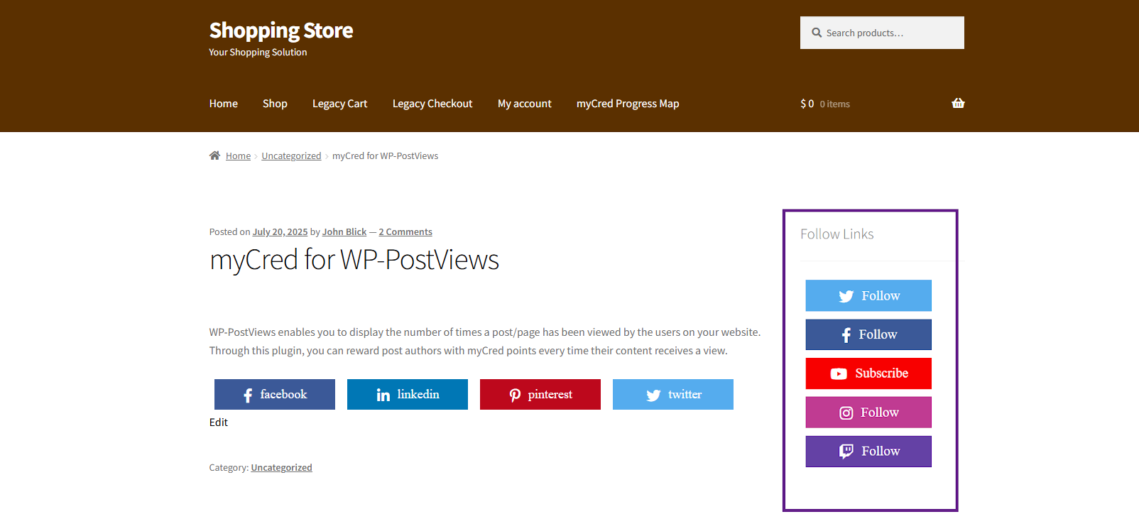 myCred Social Share is a powerful add-on that rewards users with points whenever they share your posts on social media platforms. This add-on allows you to configure point-awarding criteria and control how sharing options are displayed on your website. If you want to engage and reward users for sharing your content, myCred Social Share is the perfect solution.