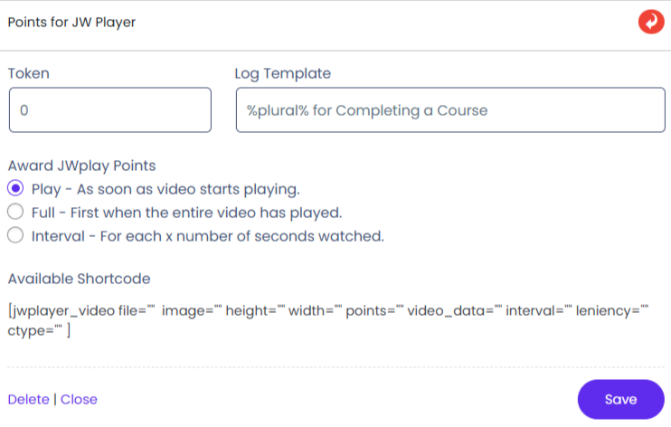 JW Player with myCred Plugin that allows the admin to award points to users according to watching videos type. Also, this type of admin can be defined by their side